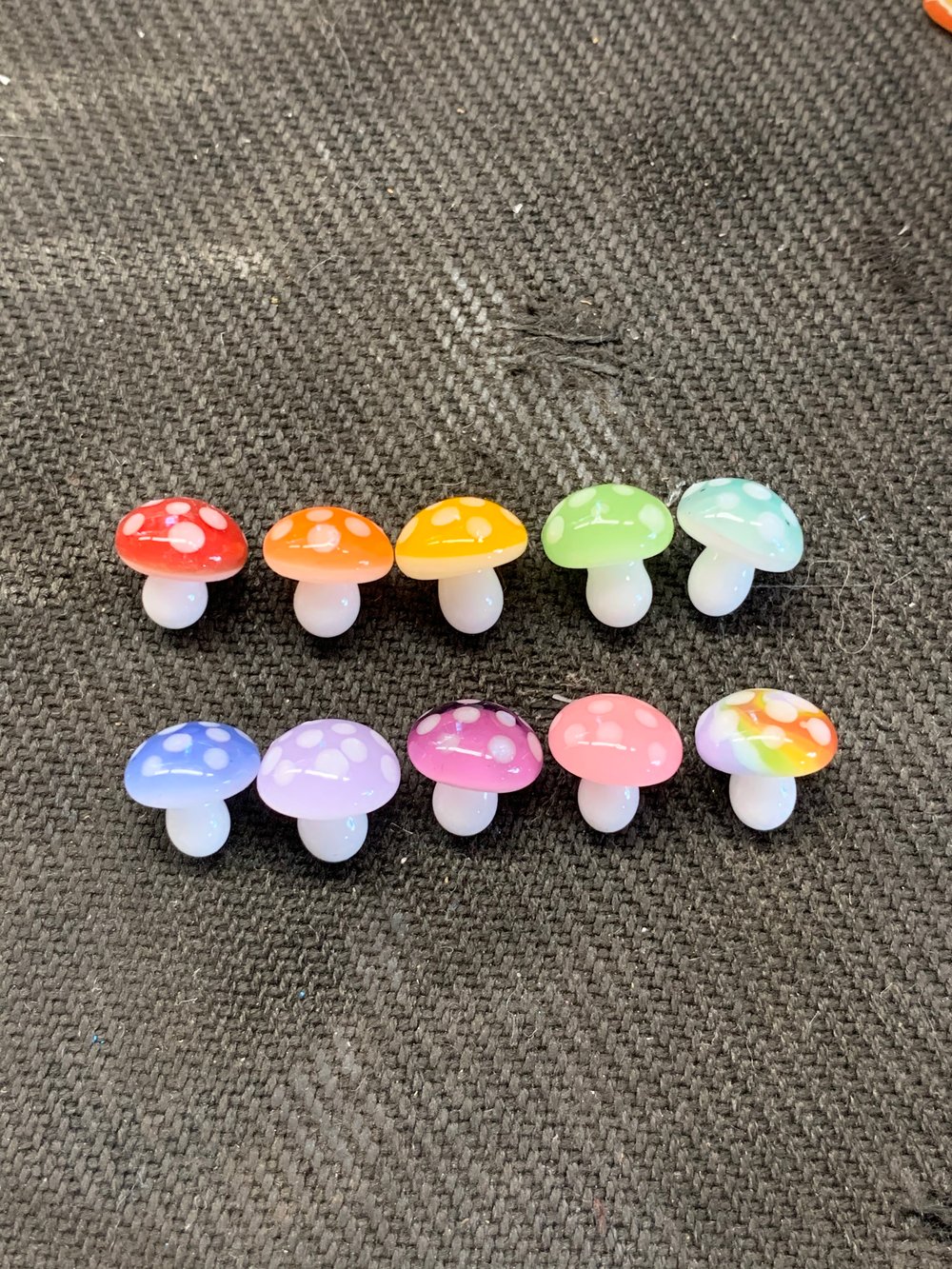 I love mushrooms and springtime rainbows! Who doesn’t? These cute little mushroom pearls measure around 9mm, and 3 fit together on a dime! PLEASE NOTE: I strive for perfection, however all of my items are handmade, and may have slight variances. Thanks for your support!