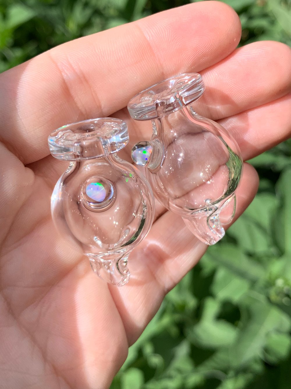 The opal on the side helps prevent your carb cap from rolling around on your table, and the directional “noodles” help spin your pearls around. THESE DO NOT FIT PUFFCO!