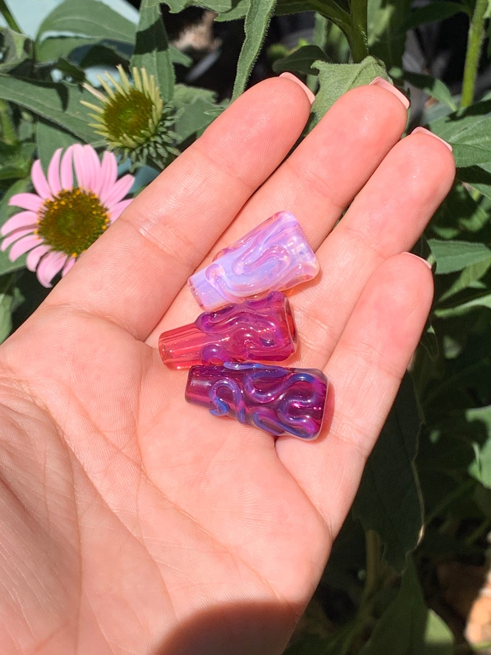 Something new! These little joint/blunt tips are the perfect stoner accessory. You can wear them as beads on a necklace, keep them in your pocket as a worry stone/fidget toy, or smoke a joint out of it! I love the way the squiggles feel.